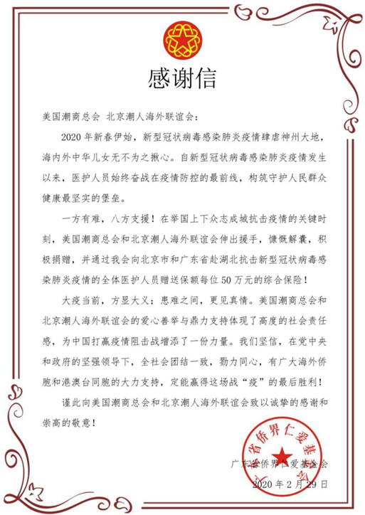 疫情无情人有情,潮汇众善成大爱——北京潮人海外联谊会、美国潮商总会支援抗疫综合报道