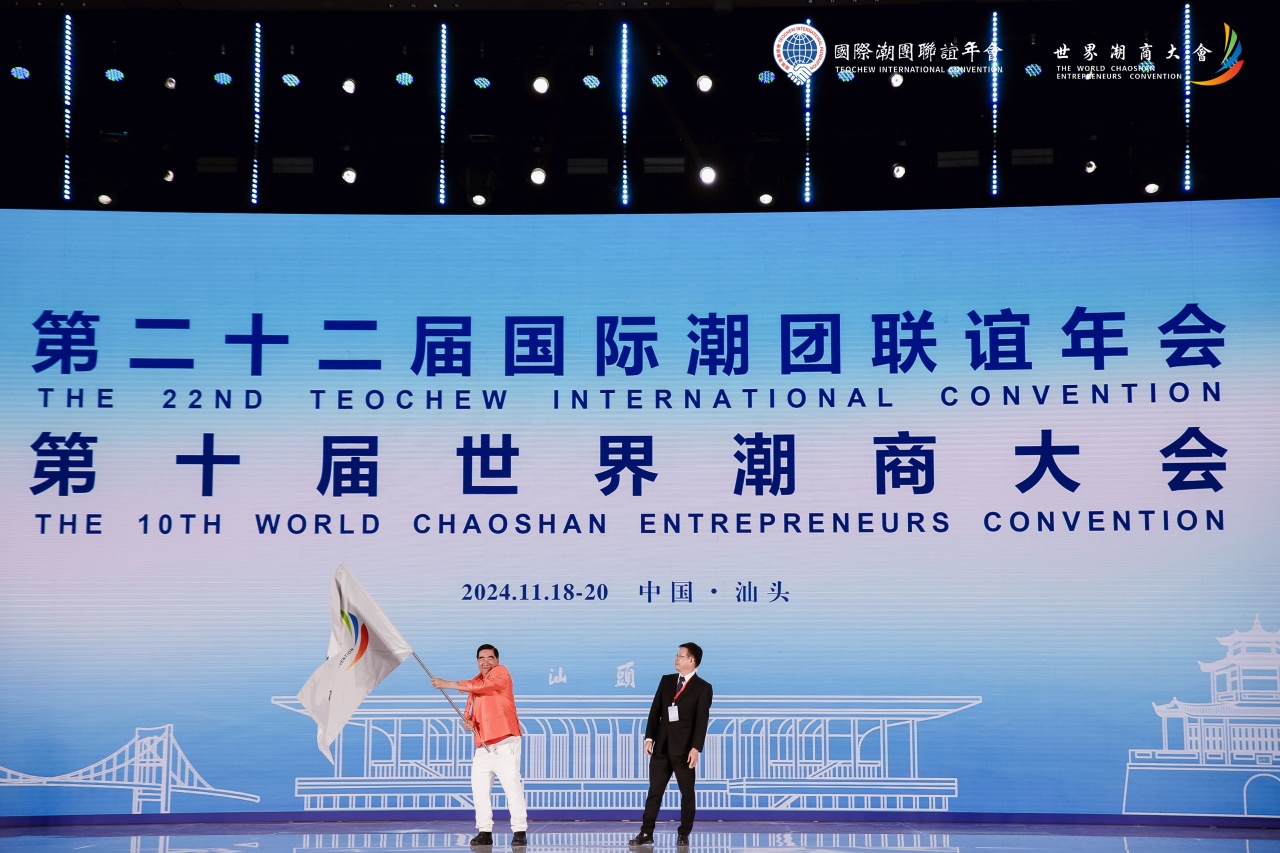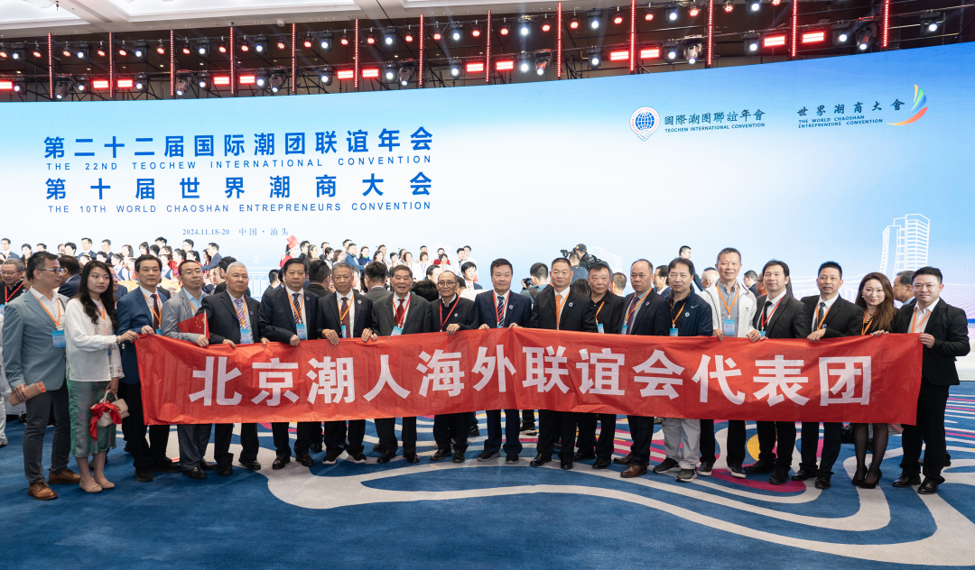 11月18日-20日,以“潮聚·向汕”为主题的第二十二届国际潮团联谊年会、第十届世界潮商大会在汕头圆满举行。北京潮人海外联谊会会长张章笋,执行会长林辉勇,常务副会长张卫军,监事长林鑫,副会长兼秘书长张弛,副会长吴夏勃、陈章孟、钟潮辉、许旭亮、刘文雄、张热云、杨少忠、李伟南、方基长、黄伟建,监事姚定文等应邀出席此次大会。国际潮团联谊年会和世界潮商大会是海内外潮籍华侨华人公认的层级最高、领域最广、影响最深的侨界、商界国际盛会,来自32个国家和地区266个潮属社团、商会的2800名代表齐聚一堂,共绘经济宏图、共享文化盛宴、共燃青春激情、共聚团结力量。