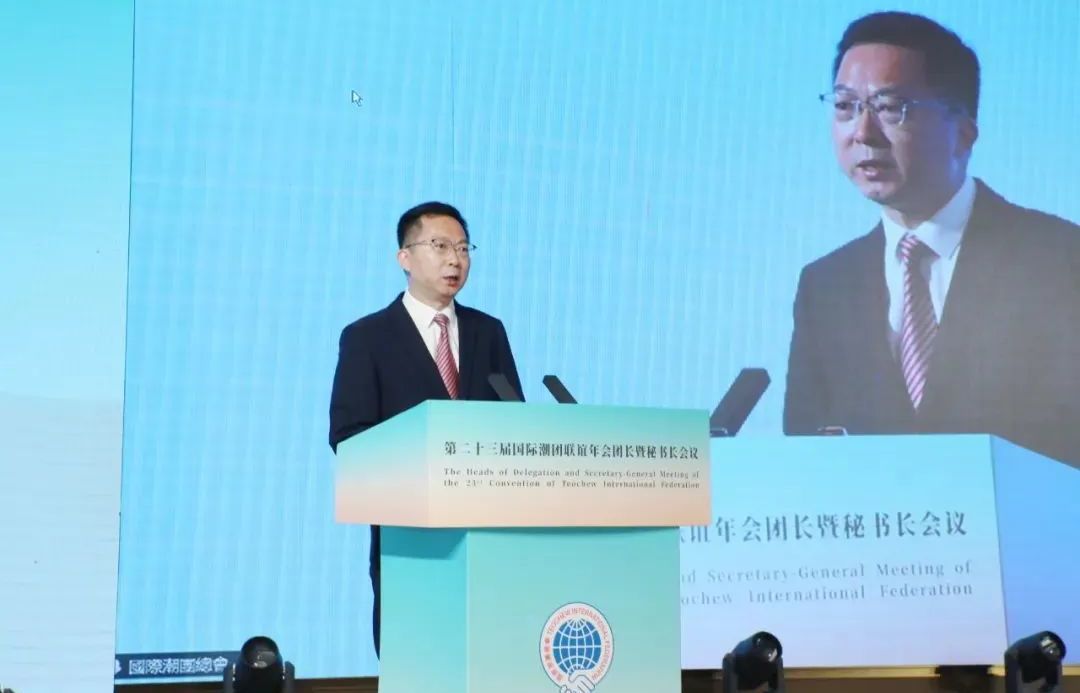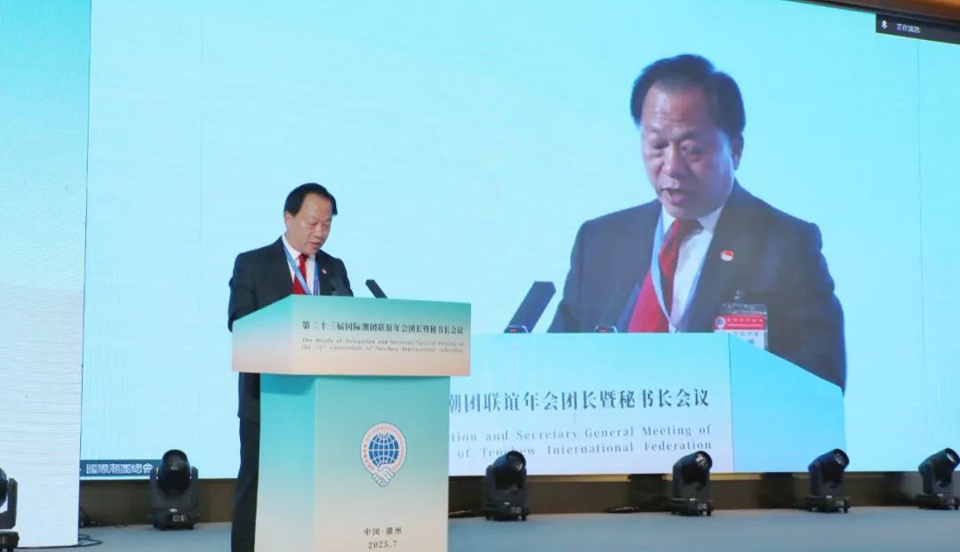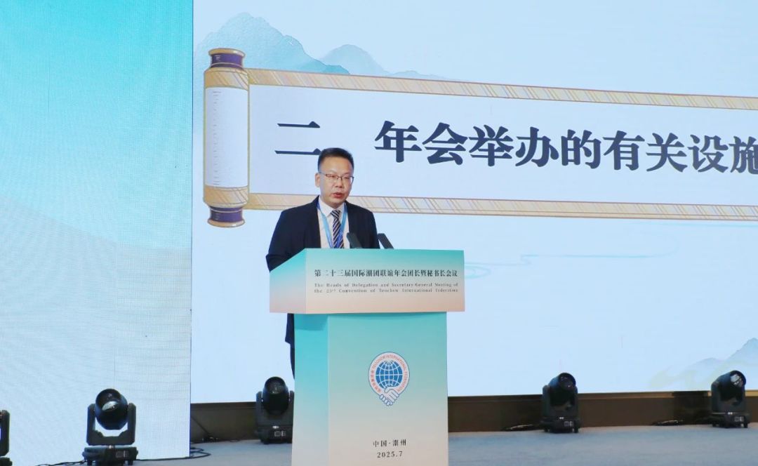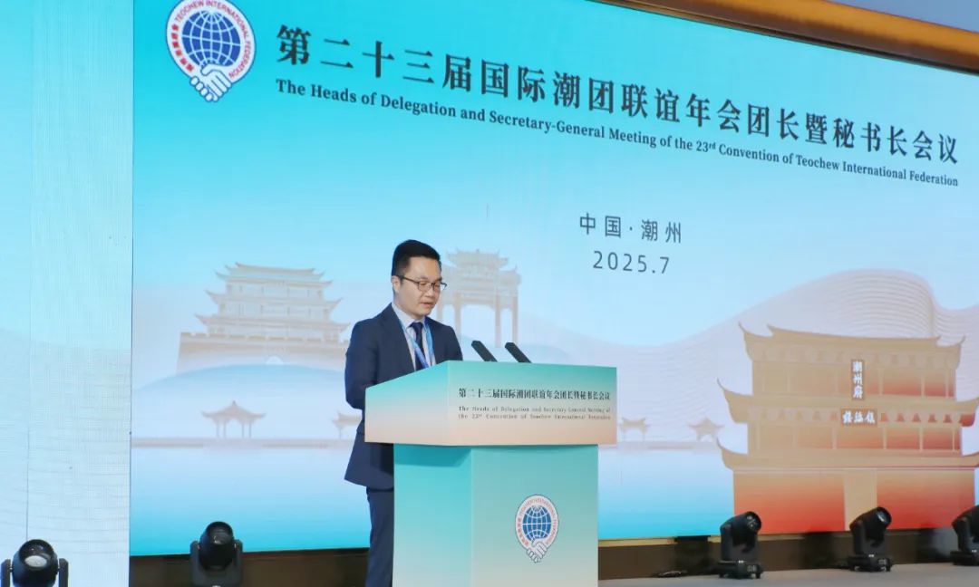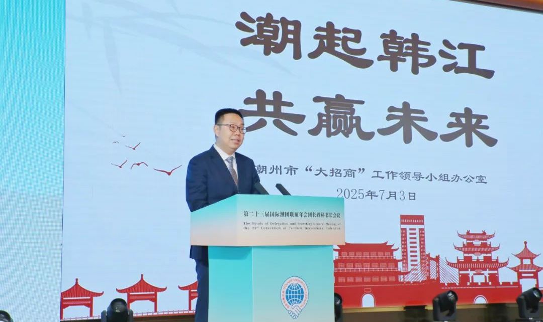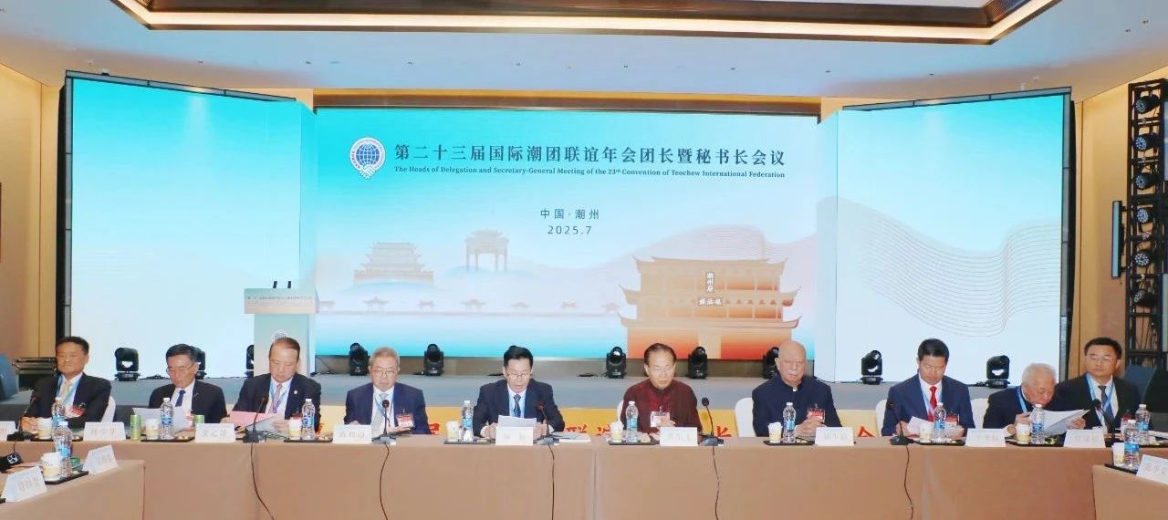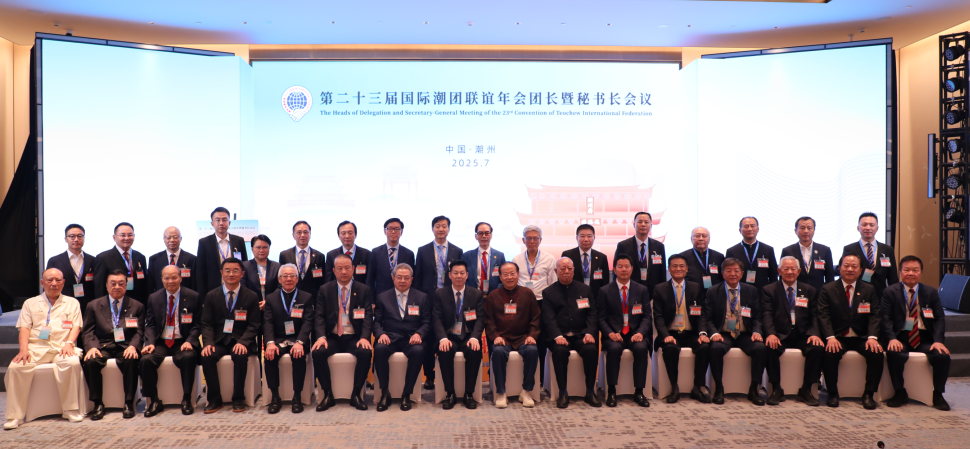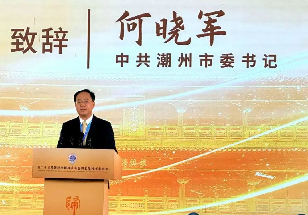 2025年7月3日,第二十三届国际潮团联谊年会团长暨秘书长会议在潮州举行,传达学习习近平总书记关于侨务工作的重要论述,引领广大潮籍乡亲凝聚共识、汇聚力量,齐心协力推动第二十三届国际潮团联谊年会顺利举办,携手谱写中国式现代化潮州新篇章。潮州市委书记何晓军出席大会并致辞。广东省委原副书记蔡东士,潮州市委副书记、市长刘胜,市政协主席王文森,广东省委统战部二级巡视员苏少峰,广东省侨联副主席陈农灏,潮州市委常委、统战部部长庄宋太,潮州市人大常委会党组副书记、副主任佘楚雄,潮州市副市长周茹茵以及汕头、揭阳有关领导等出席活动;国际潮团总会第二十三届理事会主席徐和,执行主席陈幼南、林少毅、张乙坤、李奕标、林少华、林辉勇;以及来自20多个国家和地区的300多位潮属社团团长、秘书长出席大会。