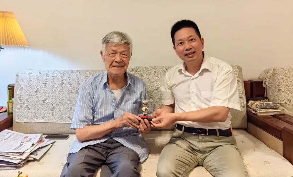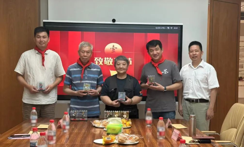 李伟南会长还为退役军人代表许乐雄、杜斌、林樾,以及军属代表陈南鸥等送上分会精心准备的文创纪念品。