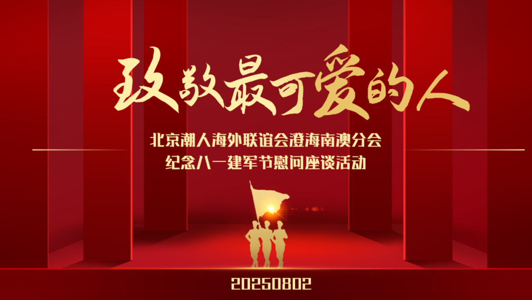 在中国人民解放军建军98周年,也是中国人民纪念抗战胜利和世界反法西斯战争胜利80周年之际,为弘扬拥军优属光荣传统,表达对军人和军属的崇高敬意,深化在京澄海南澳乡亲的家国情怀,北京潮人海外联谊会澄海南澳分会于2025年8月2日,在北京潮人海外联谊会会所成功举办了一场以纪念八一建军节“致敬最可爱的人”为主题的慰问座谈活动。
