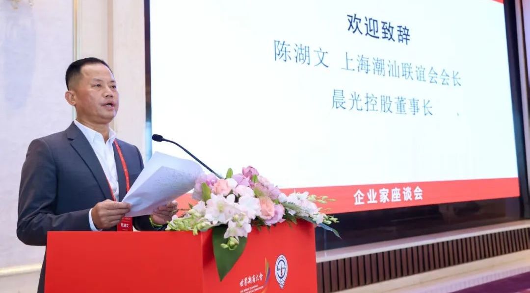 在8月9日下午的会议上,上海潮汕联谊会会长、晨光控股(集团)有限公司董事长陈湖文发表热情洋溢的讲话,向来自世界各地的潮商优秀人士表示热烈的欢迎。他讲到,接过成立36载的联谊会接力棒,我们深知前路光荣而艰巨!“为谁办会?为何兴会?”——答案早已铭刻于心:就是服务好每一位在沪潮汕人!就是打造我们共同的“家”!
