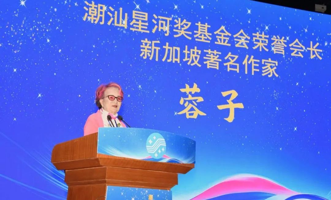 新加坡著名作家蓉子,作为潮汕星河奖基金会荣誉会长、名誉会长的代表发言,她呼吁海内外潮汕乡贤达士继续携手共同推动星河事业迈向新的辉煌。