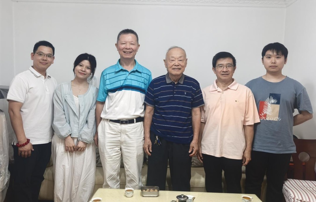随后,慰问队伍前往北京科技大学拜访德高望重的郑保元教授。郑教授是丰顺留隍人,1957年考入北京科技大学,后留校任教,成为自动化信息工程学院的知名教授,长期从事智能控制领域的研究。尽管离开家乡近70载,郑教授仍能非常流利地用潮汕话与大家交流,乡音未改,令人倍感亲切。
