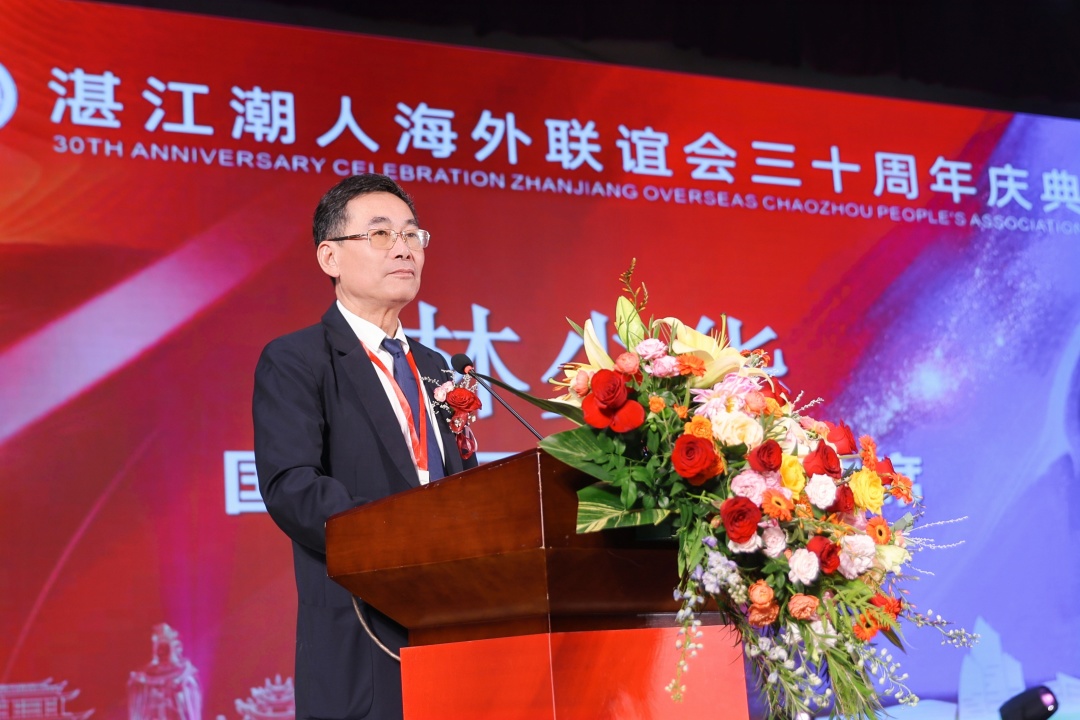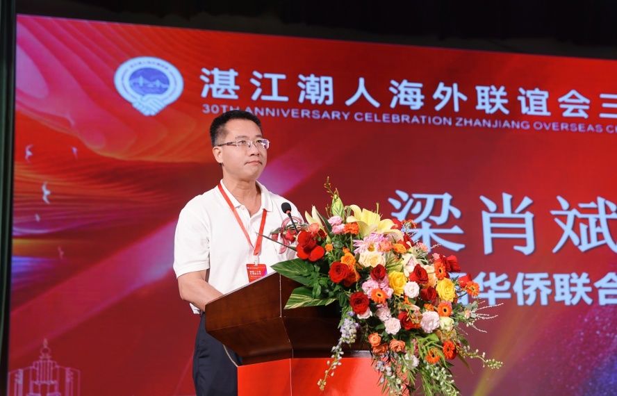 国际潮团总会执行会长林少华、湛江市侨联主席梁肖斌先后发表讲话,充分肯定湛江潮联会三十年来在联结海内外潮籍力量、促进地方经济文化交流、投身公益事业等方面的积极贡献,期待潮联会未来继续发挥桥梁纽带作用,为湛江与海内外地区的合作添砖加瓦。