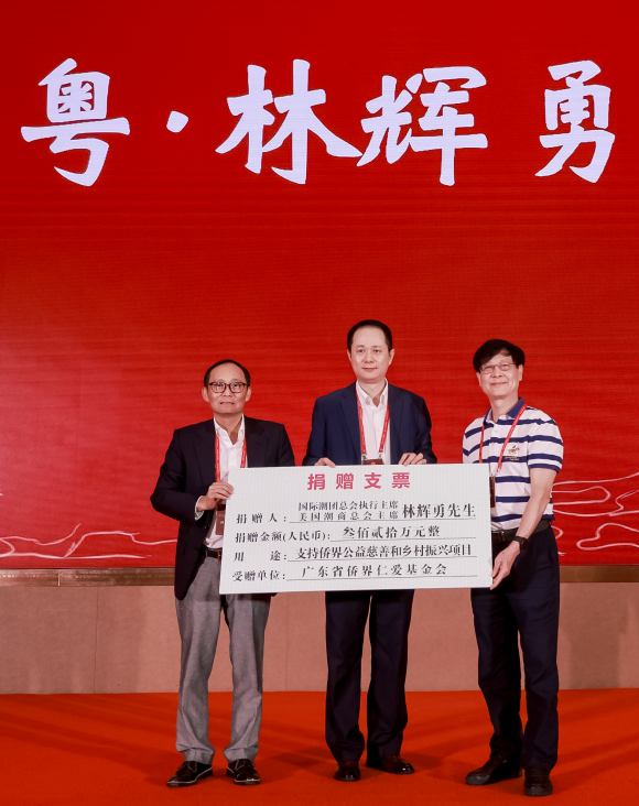 侨宴上举行了“侨爱南粤”捐赠仪式。国际潮团总会执行主席、美国潮商总会主席、北京潮人海外联谊会执行会长林辉勇先生向广东省侨界仁爱基金会捐赠320万元,支持侨界公益慈善事业和乡村振兴工作。