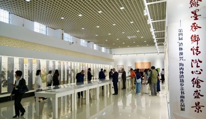 参加本次交流会的各位代表会后还一同前往澄海博物馆参观第四届“澄怀逸兴”海内外澄籍乡亲书画作品展。澄海南澳分会各位代表在本会前期选送参展的蚁美泰大校、蔡帆博士、黄湘文硕士的作品前合影留念。