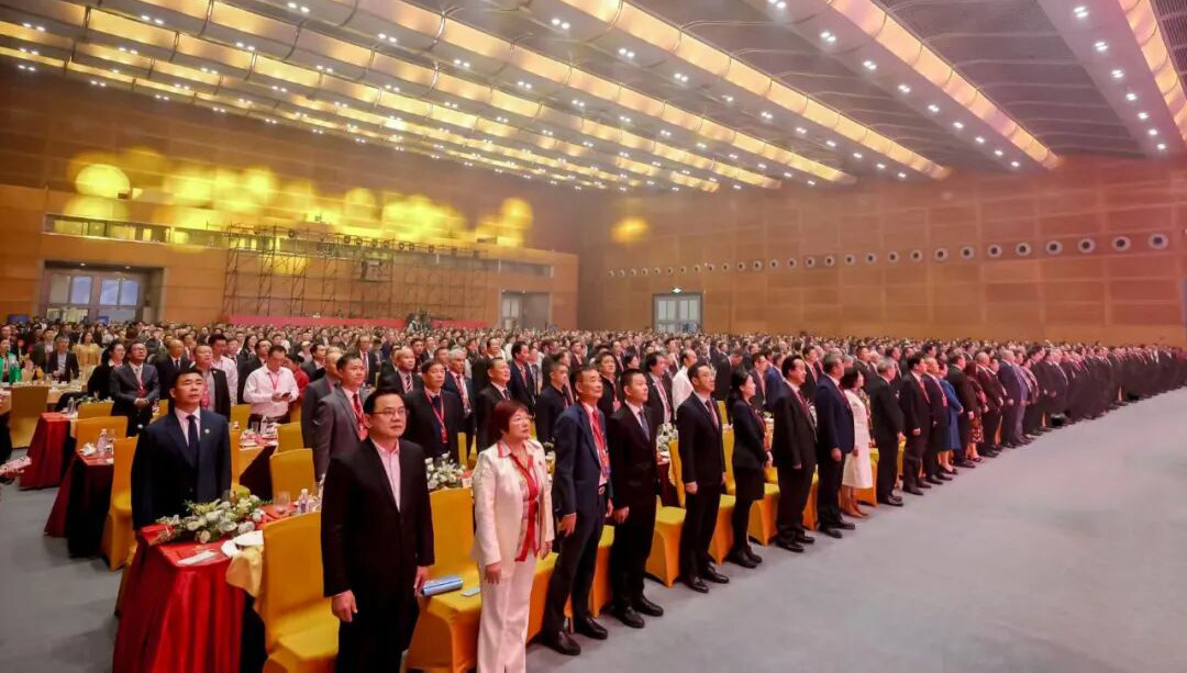 大会在激昂的锣鼓表演和庄严的中华人民共和国国歌声中拉开帷幕。来自全球20个国家和地区120个商协会代表团、潮人精英、政商名流及商会会员共1500人齐聚一堂,共叙乡谊、共谋发展、共绘蓝图。